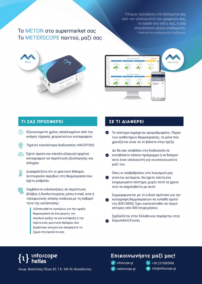 - Διευκόλυνση διαδικασιών HACCP / ISO & διασφάλιση τήρησης υγειονομικών κανονισμών