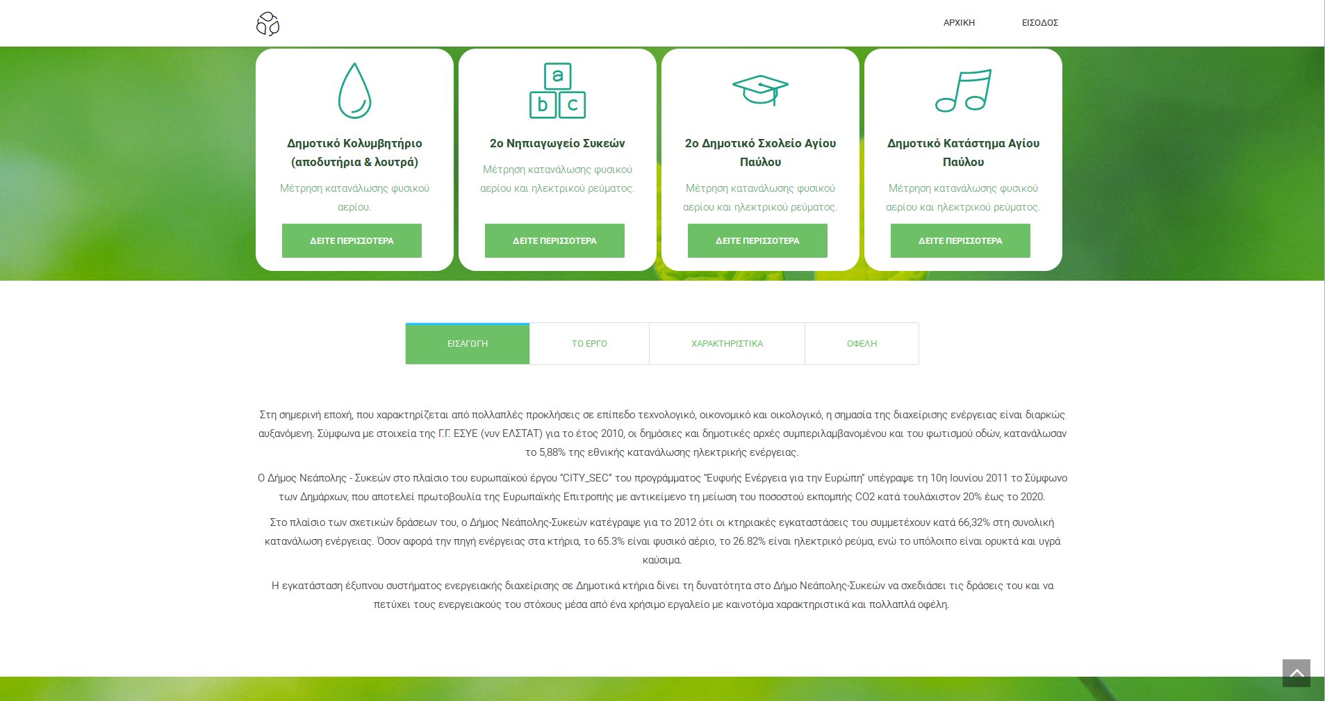 Η εγκατάσταση έξυπνου συστήματος ενεργειακής διαχείρισης σε Δημοτικά κτήρια δίνει τη δυνατότητα στο Δήμο Νεάπολης-Συκεών να σχεδιάσει τις δράσεις του και να πετύχει τους ενεργειακούς του στόχους μέσα από ένα χρήσιμο εργαλείο με καινοτόμα χαρακτηριστικά και πολλαπλά οφέλη.